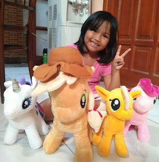 Saya pilih kategori creative toys untuk Safina (girl), usia 7 tahun dengan budget kisaran Rp 200.000 dan keluarlah beberapa pilihan. Eh kok ya, emang pas ya sama kesukaan si Nana akhir-akhir ini? Mini figures My Little Pony nongol di salah satu pilihan. Dia emang suka banget bercerita dengan memakai properti dan boneka sebagai tokoh ceritanya. Sekarang ini dia lagi sering merekam videonya sendiri bercerita dengan menggunakan boneka (tanpa dia masuk ke dalam frame). Insya Allah, nanti kalau hasilnya udah bagus, akan jadi episode terbaru di Safina's Home Video.